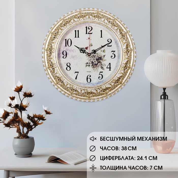 Часы настенные, интерьерные "Полевые цветы", бесшумные, d-38 см