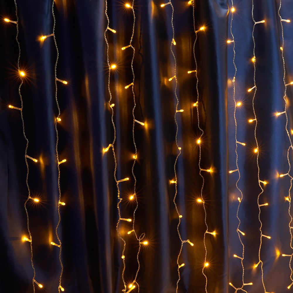Feron Светодиодная гирлянда CL19 занавес 2*1,5м + 3м желтый статичная, c питанием от сети 230V, прозрачный шнур