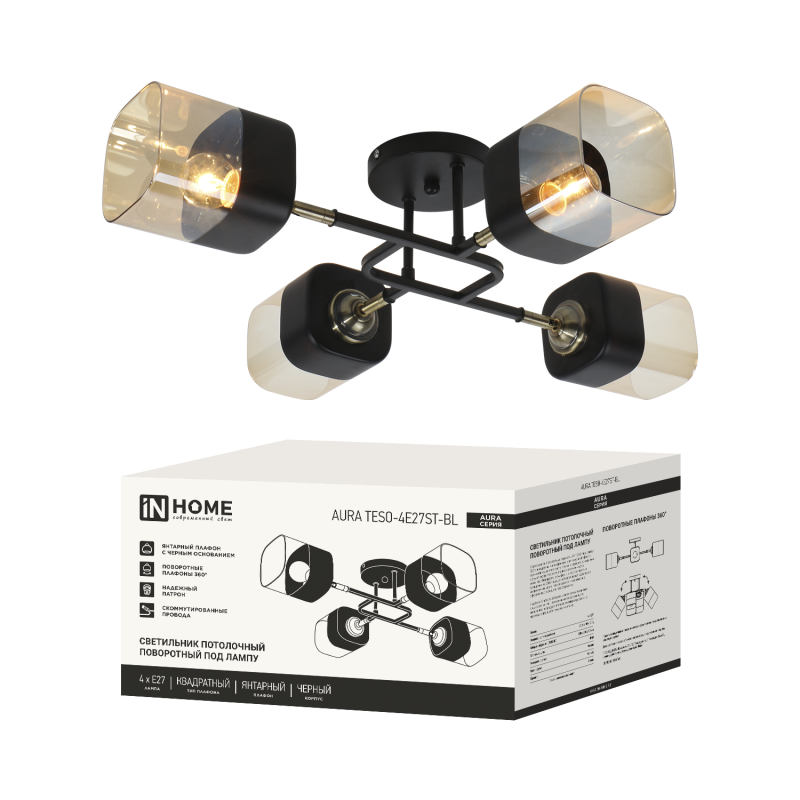 IN HOME Люстра поворотная под лампу AURA TESO-4E27ST-BL 4хЕ27 янтарные плафоны, черный корпус 4Р0008
