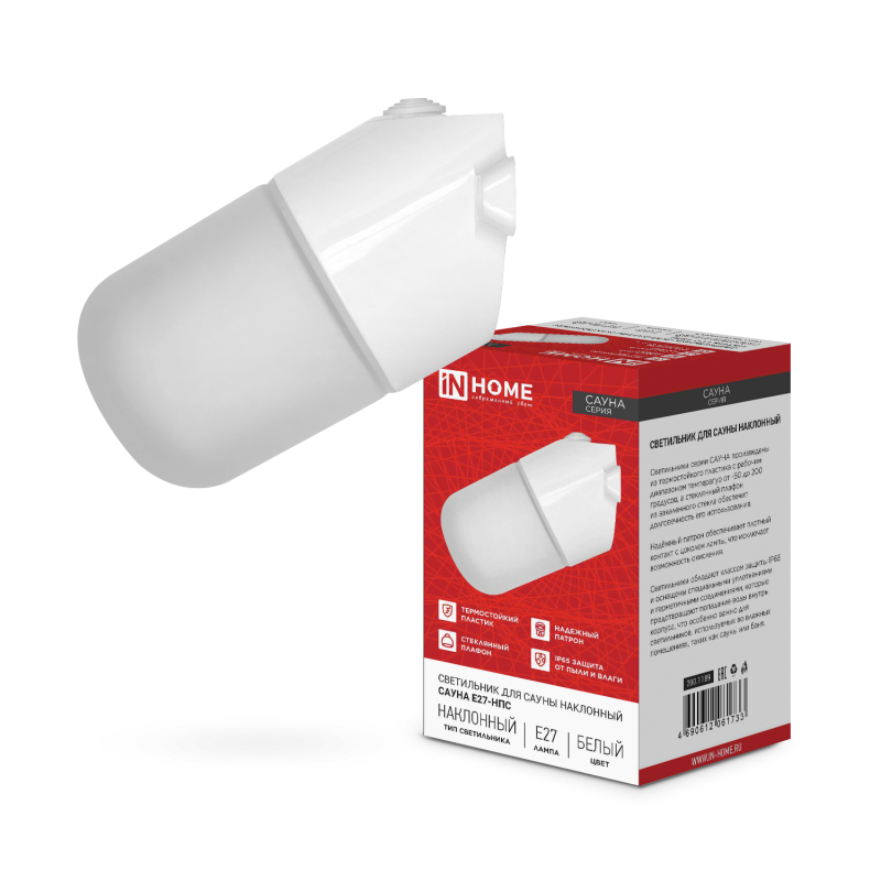IN HOME Светильник для сауны наклонный САУНА E27-НПС пластик, стекло IP65 101x160мм белый