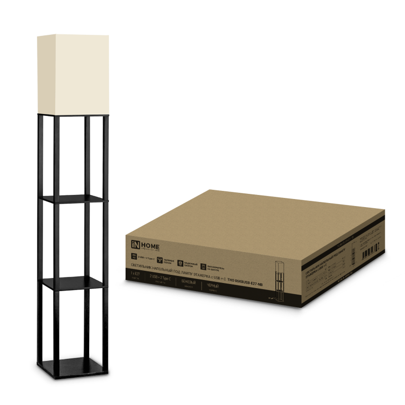 IN HOME Светильник напольный под лампу этажерка ТНО 06КВ-Е27-NB 230В бежевый абажур, черный корпус