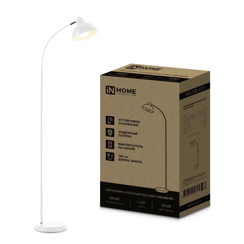 IN HOME Светильник напольный под лампу ТНО 03-Е27Б 230В белый плафон, белый корпус