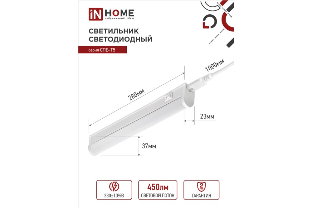 IN HOME Светильник светодиодный СПБ-Т5 5Вт 4000К 230В 450лм 300мм