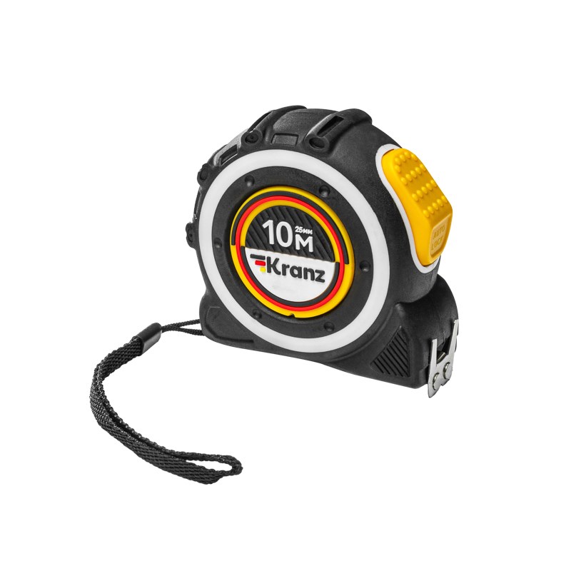 KRANZ Рулетка Selbstfixierung, 10м x 25мм, магнитный двухсторонний зацеп, нейлон, двухсторонняя шкала, автоматическая фиксация