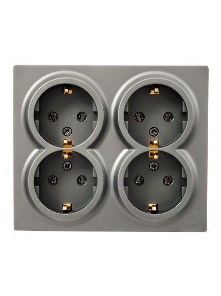 Lezard LETO Розетка четверная с/з закрытый корпус ПБТ платина