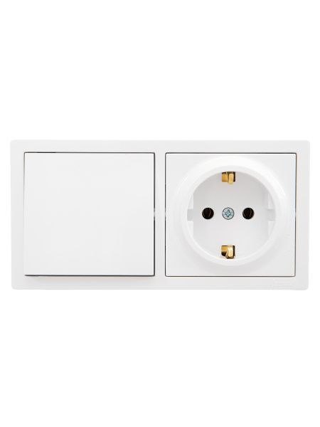 Lezard LETO Выключатель и розетка с/з, белый горизонталь