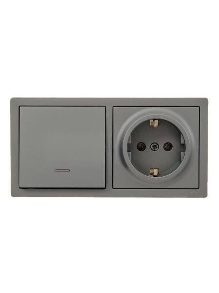 Lezard LETO Выключатель с подсветкой и розетка с/з, платина горизонталь