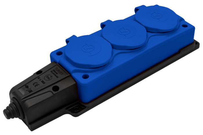 NE-AD Колодка штепсельная 3-гн. С крышками, с/з, 16А, IP54 (каучук), Синий