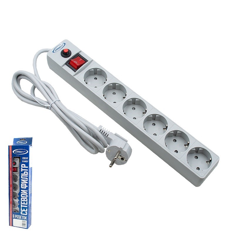 Standart-Luxe Сетевой фильтр-удлинитель 6-гнезд 3м с защитными шторками