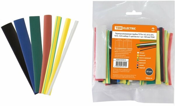 Термоусаживаемая трубка ТУТнг 4/2, 6/3, 8/4, 10/5, 12/6 набор (7 цветов по 1 шт. 100мм) TDM