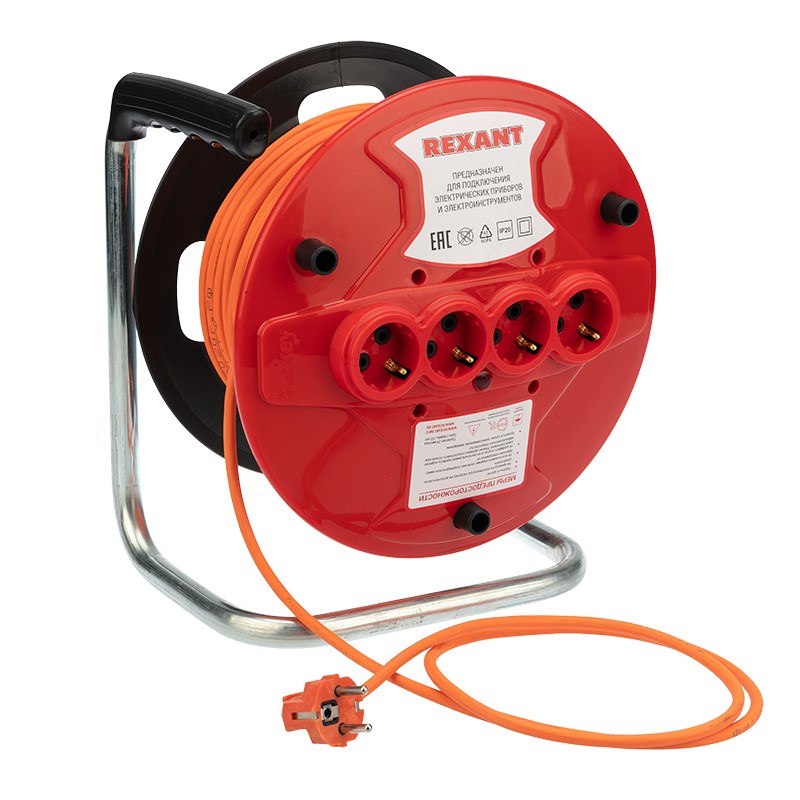 Rexant Удлинитель-шнур на катушке ПВС 3х1.0 50м 4 гнезда с/з 10А 2200Вт. IP20