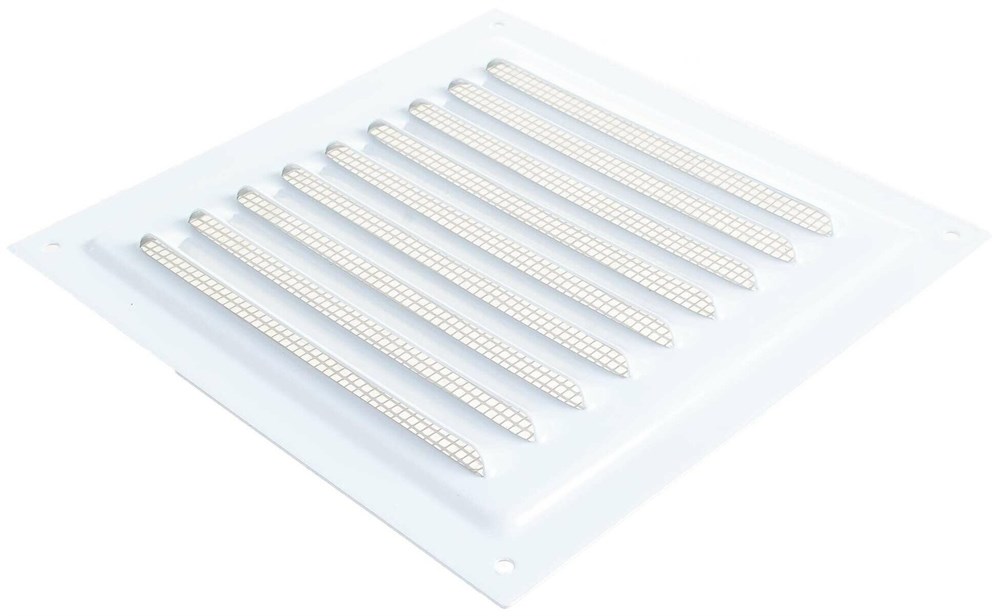 Вентиляционная решетка металлическая с сеткой 150х150 мм, белая