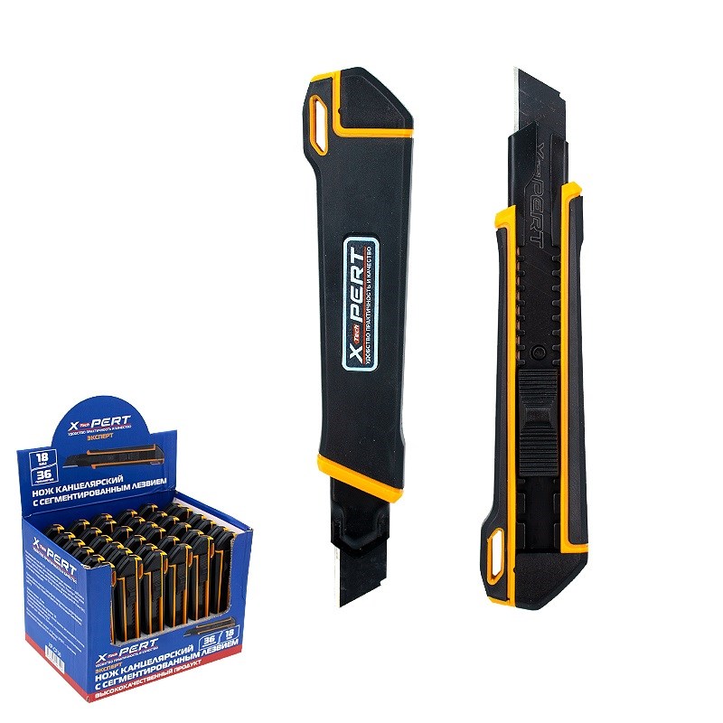 X-PERT Нож строительный 18 мм XP-CF36 каленое лезвие прорезиненный корпус